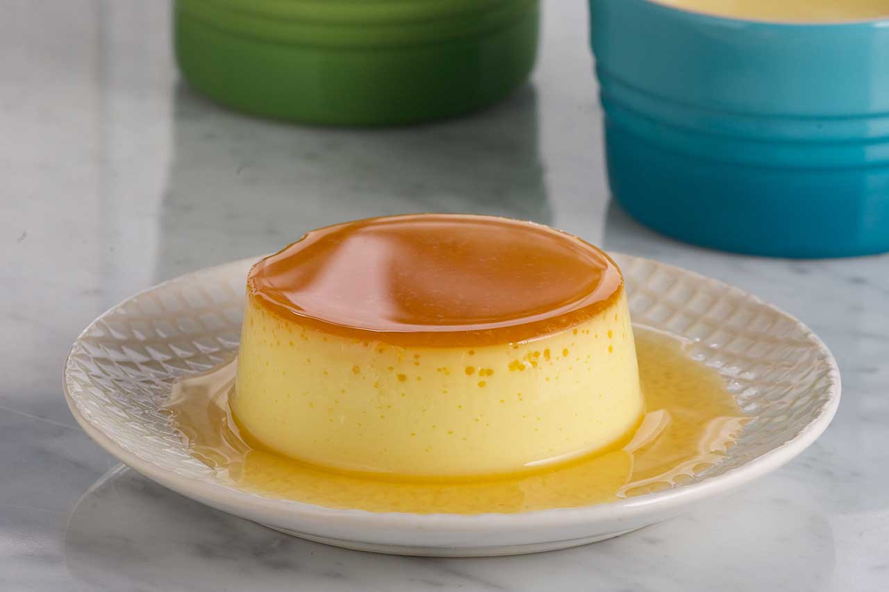 To serve, run a palette knife around the inside edge of a ramekin. Place a dessert plate over the ramekin and invert both. Lift the ramekin off, leaving the custard on the plate with the caramel as a sauce.